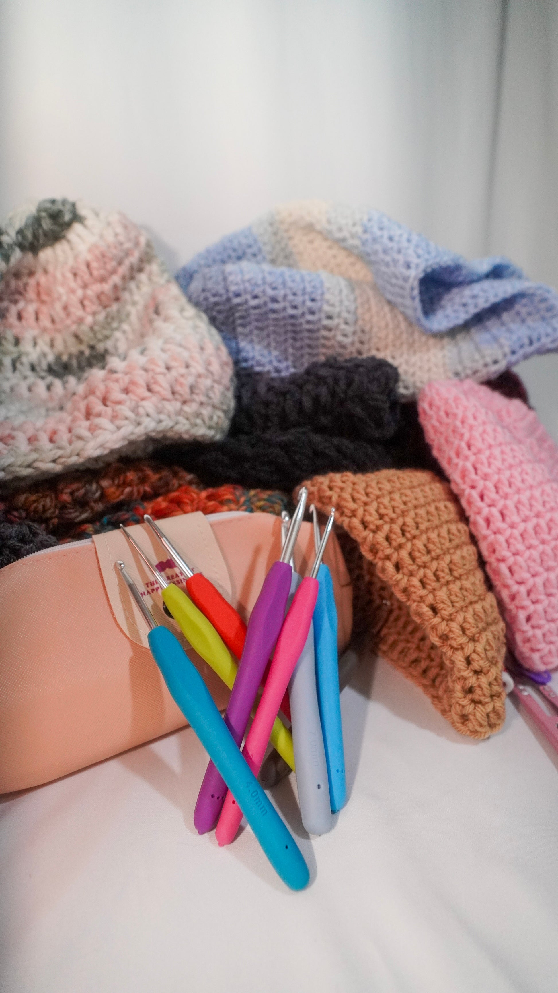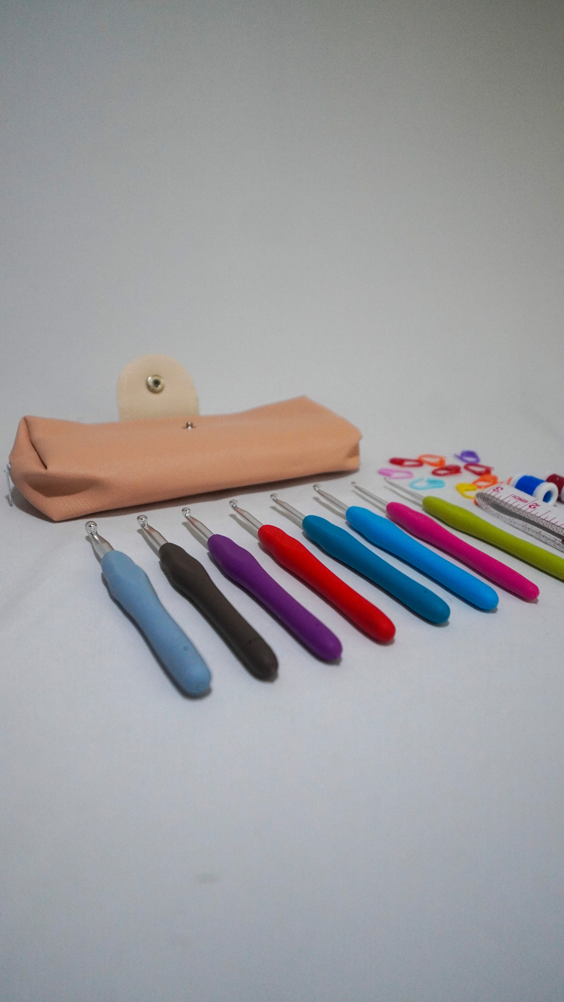 6 ergonomic crochet hooks in various sizes with soft, colorful handles for comfortable use.(2-7mm)